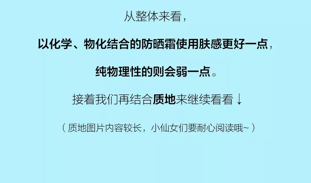 物化結(jié)合的防曬介于兩者之間,防護(hù)力可以做到佳,溫和性、膚感和抗水性介于兩者之間。
