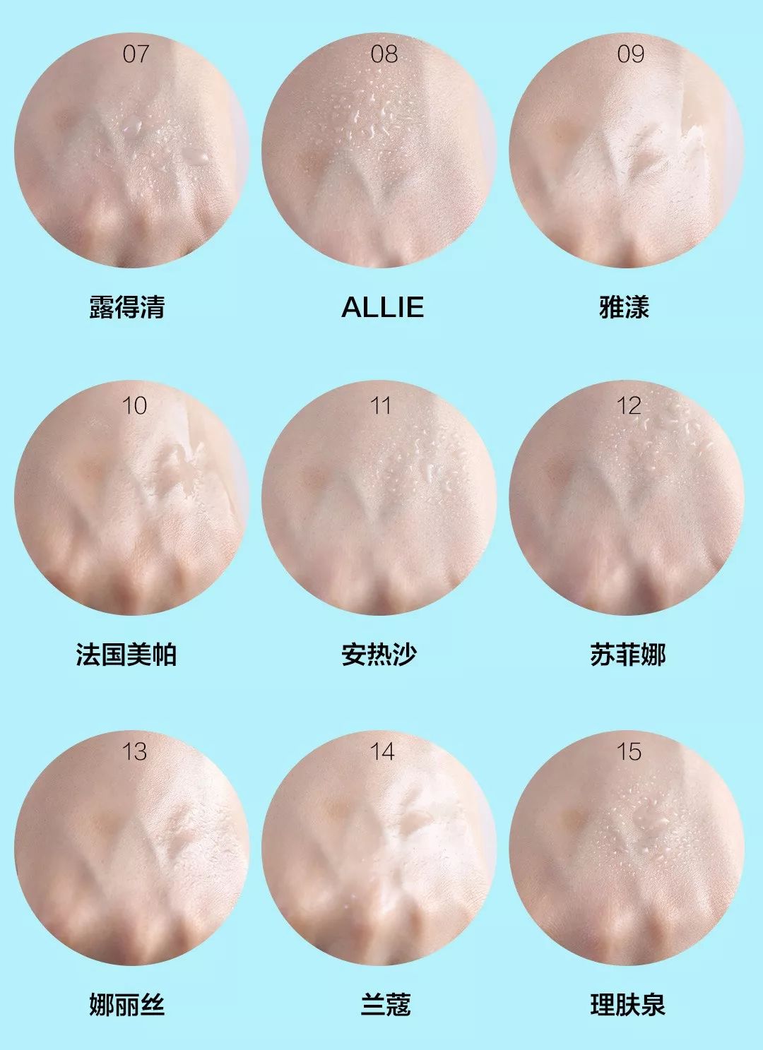 ?8.ALLIE:乳液質(zhì)地,柔滑易推開(kāi),肌膚很快吸收,無(wú)泛白,成膜很快,并且肌膚有的水潤(rùn)感,但無(wú)油光和粘膩感。