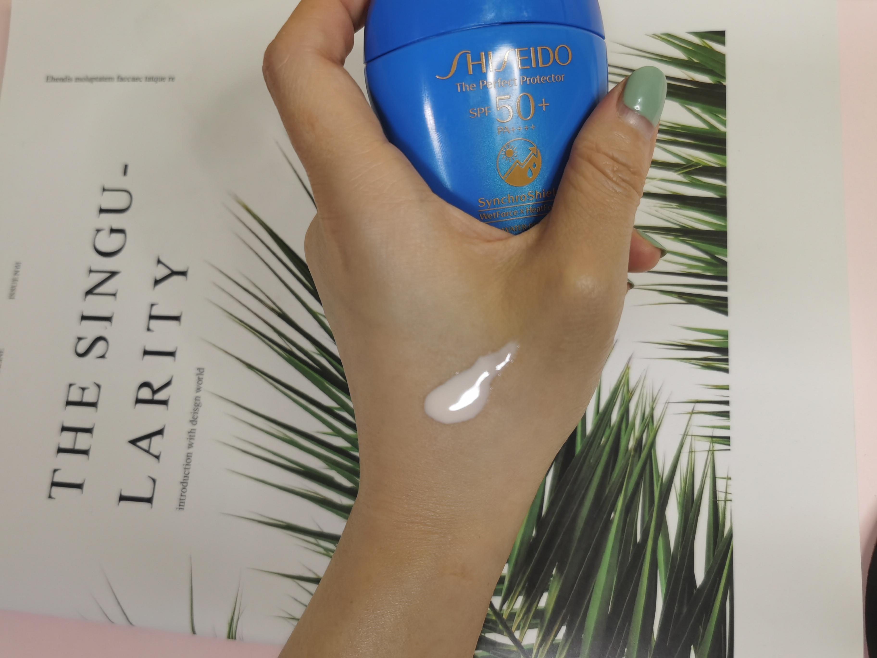 yyds藍(lán)胖子是搖搖樂(lè)的質(zhì)地,它的質(zhì)地很輕薄、清爽,成膜也快,涂在皮膚上膚感舒適,還能控油。防曬果遇水則強(qiáng),適合戶外和海邊玩耍。SPF50+,pa++++,婉兒實(shí)測(cè)后發(fā)現(xiàn),藍(lán)胖子的防曬、防水能力都還不錯(cuò)。