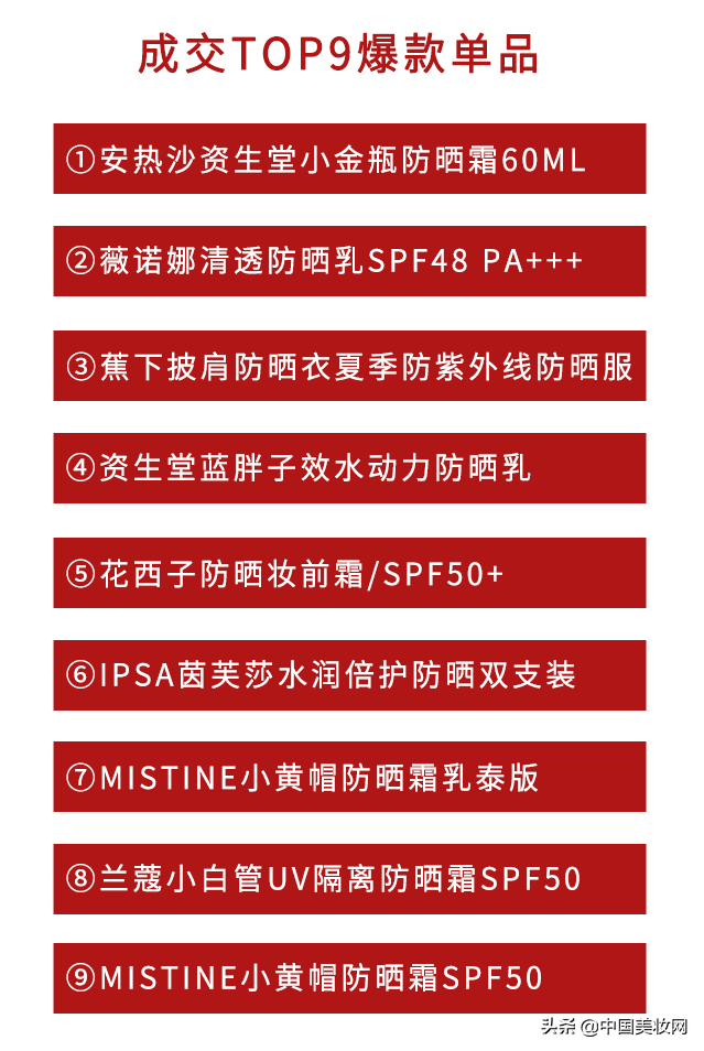 值得一提的是,功護(hù)膚領(lǐng)軍品牌薇諾娜也瞄準(zhǔn)了防曬賽道,憑借對于敏感肌防曬問題專業(yè)解決站穩(wěn)市場。旗下清透防曬乳在爆款單品榜單中排名第二位,繼續(xù)釋放“國貨之光”的無限潛力。