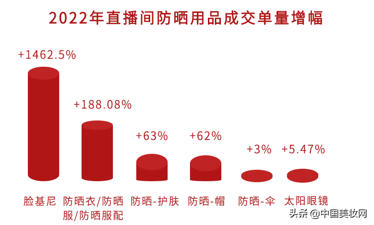 以傳統(tǒng)防曬霜為代表的化學(xué)防曬已不能滿足消費(fèi)者精致主義的訴求,面對紫外線的無死角攻擊,消費(fèi)者毫不猶豫地選擇包裹式的“物理防曬大法”進(jìn)行抵御。報告顯示,2022年1-4月,防曬用品在直播間的成交額增速達(dá)40%,其中防曬衣成交增幅達(dá)157.11%,防曬護(hù)膚成交增速達(dá)62.17%。