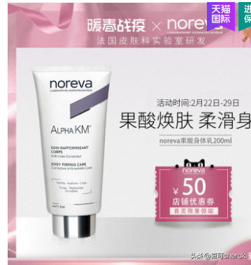 第三個產(chǎn)品同樣說自己是果酸運用先鋒,noreva歐諾顏果酸身體乳,來自法(四聲)國。