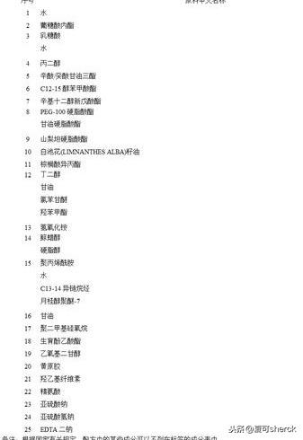 成分表只能參考下了。乳化體系共享165,哈哈。配方研發(fā)們你們自己考慮下為啥要用這個哈。第一因為便宜點,第二他相對還是耐的住酸的。不過這邊可能還用了montanova 202 配合液晶乳化。只是猜測哈。乳化劑組合算丟丟了。