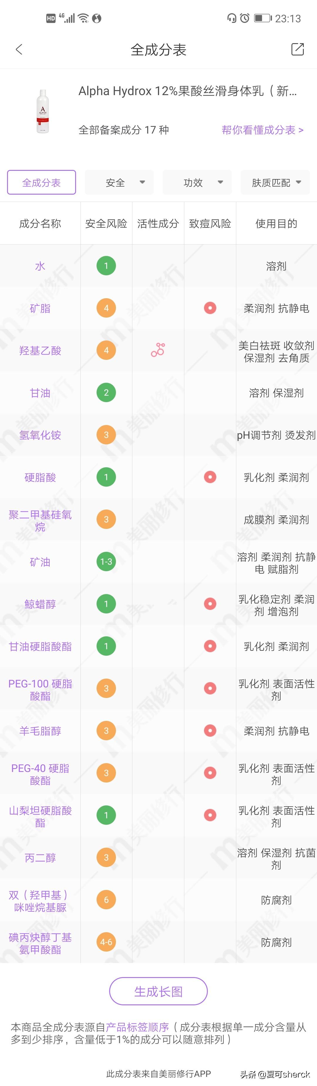 大家仔細(xì)看,他果酸就用的羥基乙酸。并沒有二代的PHA,所以……