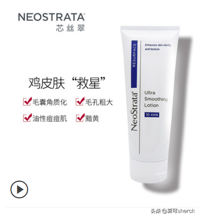 第二個猛料型是neostrata 芯絲翠。這個痘痘皮、雞皮應(yīng)該挺熟悉的醫(yī)美小眾了。他也是號稱果酸世家的。