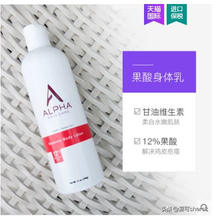 首先進(jìn)入眼簾的是一號方陣alpha hydro 12%果酸身體乳。
