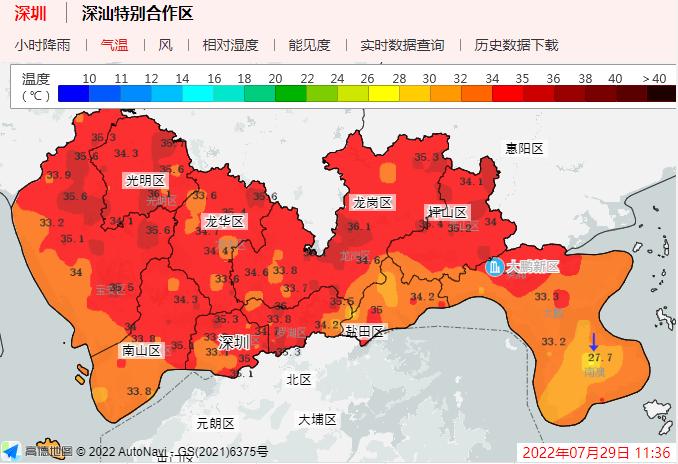 近日深圳持續(xù)高溫深圳市氣象局官網(wǎng)截圖。