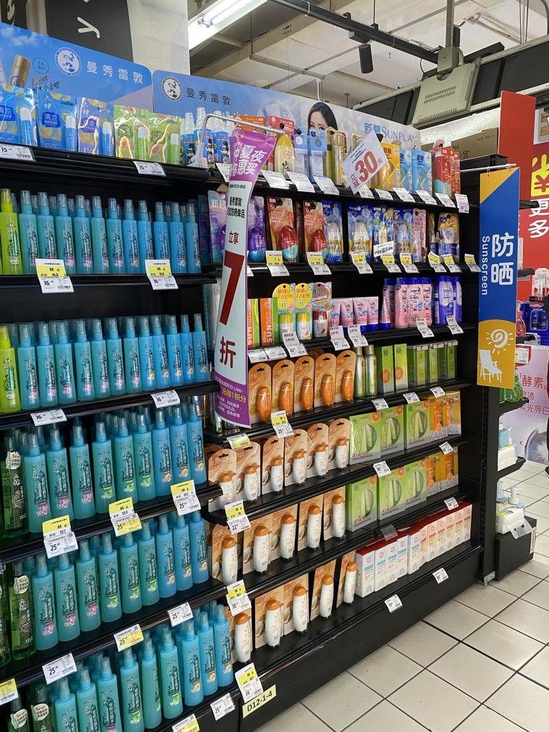不止是在繽果空間,連日來(lái)的高溫也讓多家線下超市中的防曬、降溫類(lèi)的產(chǎn)品持續(xù)熱銷(xiāo)。