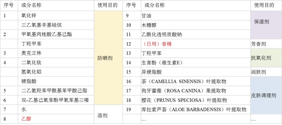 除了防曬成分外,我們還要關(guān)注其他的輔助成分,因?yàn)樗鼈円部赡茉黾悠つw負(fù)擔(dān)。我們以某款防曬霜(SPF50+ PA++++)為例來說明,防曬劑包含以下6種,抗UV成分較多,防曬果較好,對(duì)皮膚的負(fù)擔(dān)也相對(duì)較重,另外添加的酒精和香精,也可能對(duì)皮膚有一定刺激性,不適合薄皮和敏感肌膚。