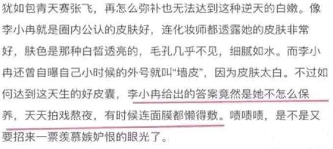 本以為李小冉的膚色優(yōu)勢(shì)是通過美白產(chǎn)品培養(yǎng)起來的,沒想到在一次采訪中,她卻自曝小時(shí)候就曾經(jīng)因皮膚太白而被叫“墻皮”,工作之后還很任性的天天熬夜不護(hù)膚,照樣擁有優(yōu)越的“奶油肌”,也太讓人羨慕了吧?