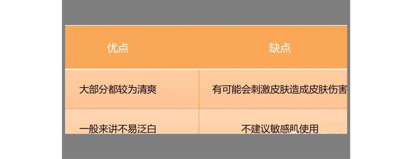 物理性防曬霜(物理性紫外線屏蔽劑):這類物質(zhì)不吸收紫外線,但能反射、散射紫外線,用于皮膚上可起到物理屏蔽作用。與化學性紫外線吸收劑相比,物理性屏蔽劑具有性高、穩(wěn)定性好等優(yōu)點,不易發(fā)生光毒反應。