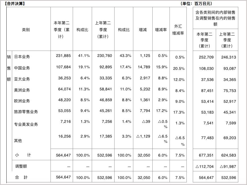 在資生堂集團(tuán)今年8月公布的2019上半年財(cái)報(bào)中,該集團(tuán)第二季度累計(jì)銷售額達(dá)5646億日元(約合人民幣375億元),同比增長7.3%。其中中國市場再次引領(lǐng),上半年合計(jì)銷售1077億日元(約合人民幣72億元),并以15.9%的增幅同比其他地區(qū)。