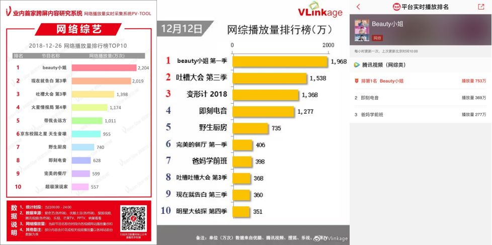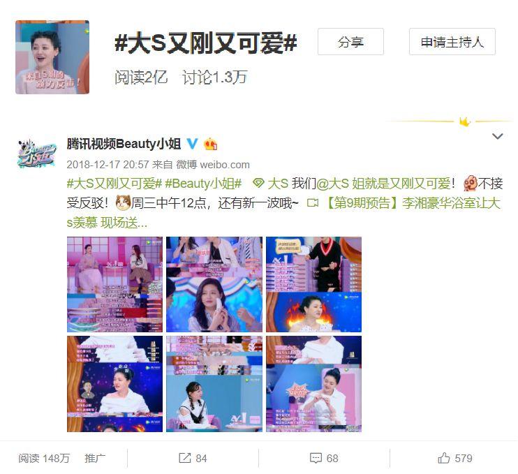 作為有“2018強(qiáng)種草機(jī)”稱號(hào)的美容美妝類綜藝,《Beauty小姐》第一季以大S為主軸,集合了沈夢(mèng)辰、張嘉倪、佘詩(shī)曼、小S、梁潔、阿嬌等一眾明星強(qiáng)勢(shì)“種草”。截至1月初,節(jié)目累積播放量破4.5億,微博平臺(tái)總話題閱讀量破8億,在貓眼、劇星、Vlinkage等多份榜單中多次位列,并由此延伸出了#大S又剛又可愛(ài)#、#明星也踩雷#、#雙十二奇浴記#、#八王妃浴室告白流觴#等多個(gè)熱門(mén)話題。“Beauty小姐同款”不僅刷屏小紅書(shū),更在淘寶、京東等電商平臺(tái)獲得數(shù)百商家推薦,并帶動(dòng)了各式各樣產(chǎn)品的銷售額增長(zhǎng)。