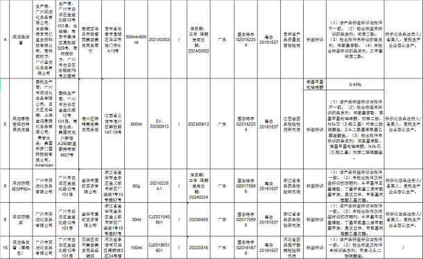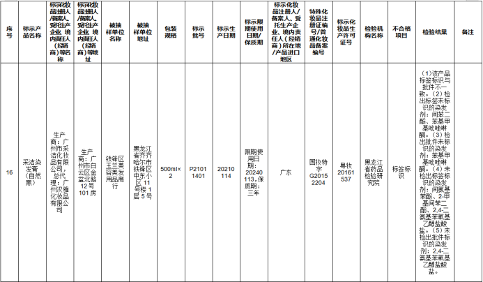 2022年1月19日,藥監(jiān)局關于71批次不合格化妝品的通告顯示,一批次標示為廣州市采潔化妝品有限公司生產(chǎn)的、批準文號/備案號為國妝特字G20152204的采潔染發(fā)膏(自然黑),被檢出標簽標示與批件不一致,檢出標簽及批次未標識的染發(fā)劑。