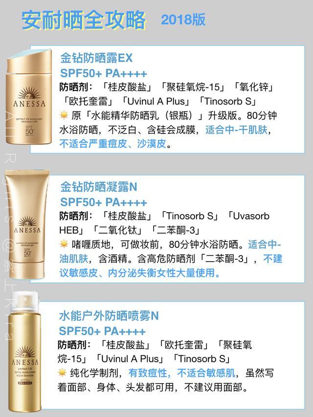 所以,「小金瓶」不適合超長時間待機使用,千萬不要當做日常防曬一抹八小時。但你完全可以依據(jù)個人膚質選擇「安耐曬」其他的產(chǎn)品。
