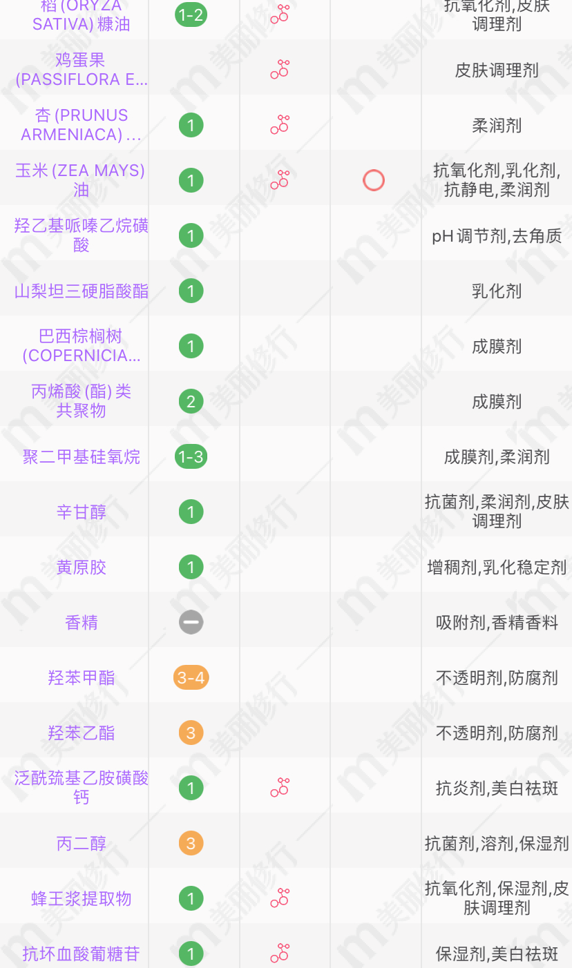從成分配比來看,除了普通的溶劑乳化劑之外,功性的成分還有蜂王漿。從質(zhì)地上來看像是冰淇淋的質(zhì)地,但是涂抹在手上還是有一些厚重,不過好在延展性比較好,沒有太多刺激性的成分,薄薄的涂上一層就比較滋潤了。