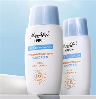 8.今年的主要防曬品牌都有“空氣感”概念,MissAlice PRO“空氣感”防曬,終結(jié)黏膩。這款新產(chǎn)品,花皙蔻冰泉清透水漾防曬露,是一款具有水波紋紋理、清爽不粘、隱形妝、防水防汗的爆款防曬產(chǎn)品。2019流行款,不get一支,就真的out啦!SPF33 PA+++,物理防曬化學(xué)防曬雙重護(hù)理,易于推開,一抹爆水的防曬值的你嘗試。