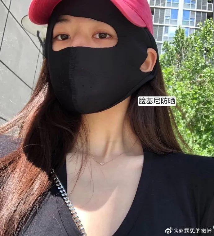 ②防曬口罩、面罩。繼瘋狂種草遮陽之后,注重防曬的趙露思又出奇制勝地給大家種下了一顆普通人不敢嘗試的防曬面基尼,防曬,到位!