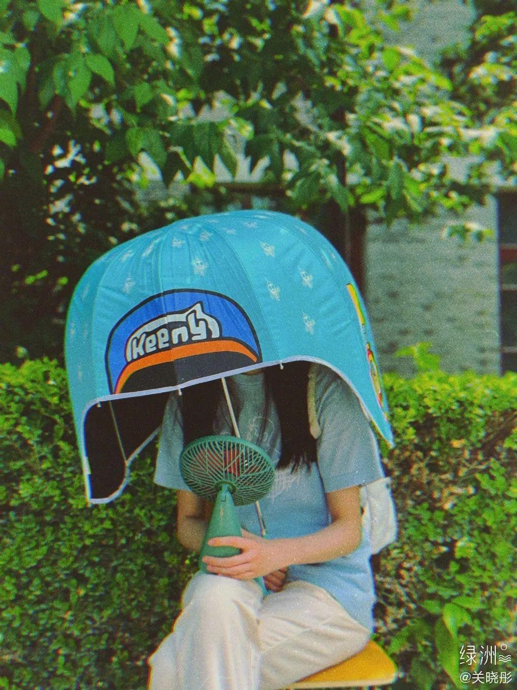 ④防曬傘。一把擁有紫外線阻隔功能的防曬傘可以滿足80%的防曬需求,像關(guān)曉彤這款360度防曬的頭盔遮陽傘就足夠讓人心動了,關(guān)曉彤還集合了小藍小黃小粉,配合防曬衫出街,萬無一失。
