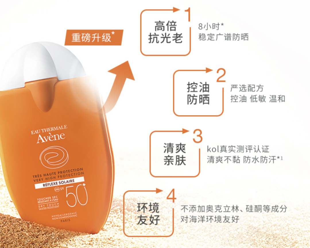 就連國際皮膚癌基金會也推薦的雅漾小金剛plus,三重防護配方,敏肌安心抵御光老,膚感清爽不黏膩。而且環(huán)保配方、不含奧克利林讓運動達人瘋狂心動,就算下海沖浪潛水也不用擔(dān)心對海洋環(huán)境造成污染~