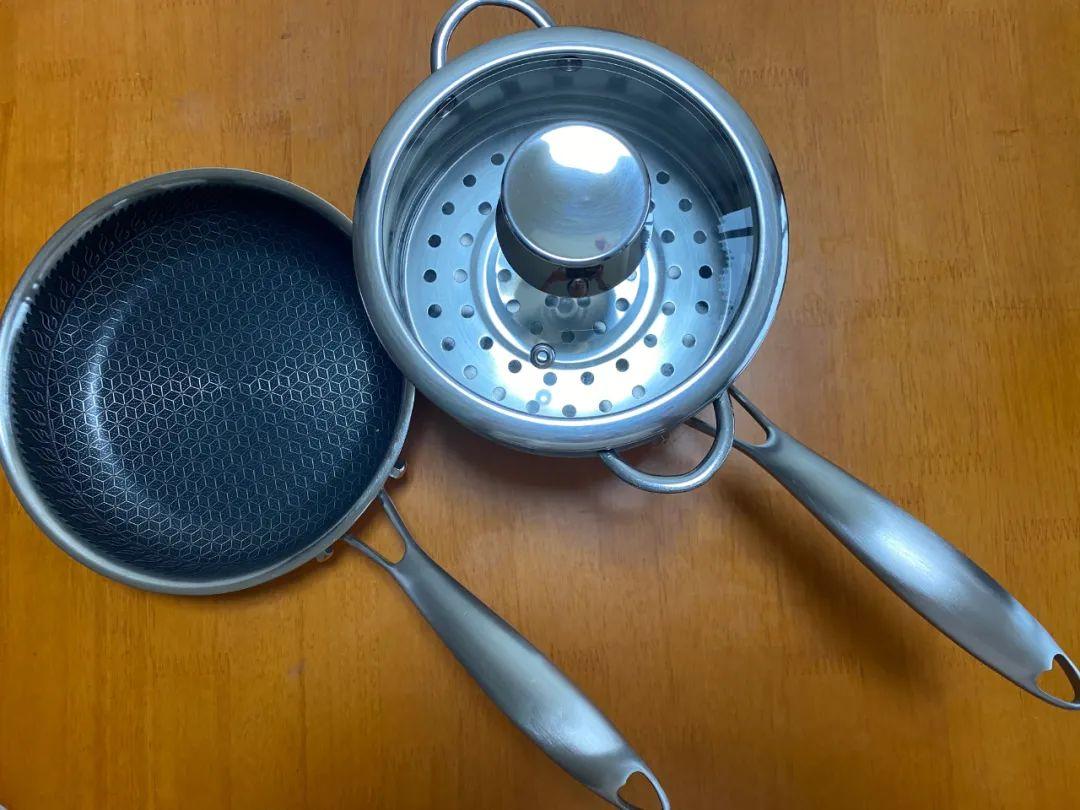 通過使用、清洗,以及煮面條、煮粥,無油煎雞蛋、有油煎雞蛋等體驗,分別評判三個品牌煮鍋和煎鍋的使用性能。