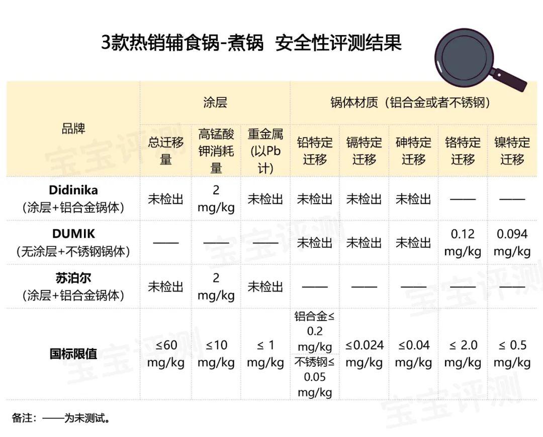 從測試結果來看,三個品牌的煮鍋性都沒有問題。結果或者未檢出,或者也在國標限定的范圍之內。