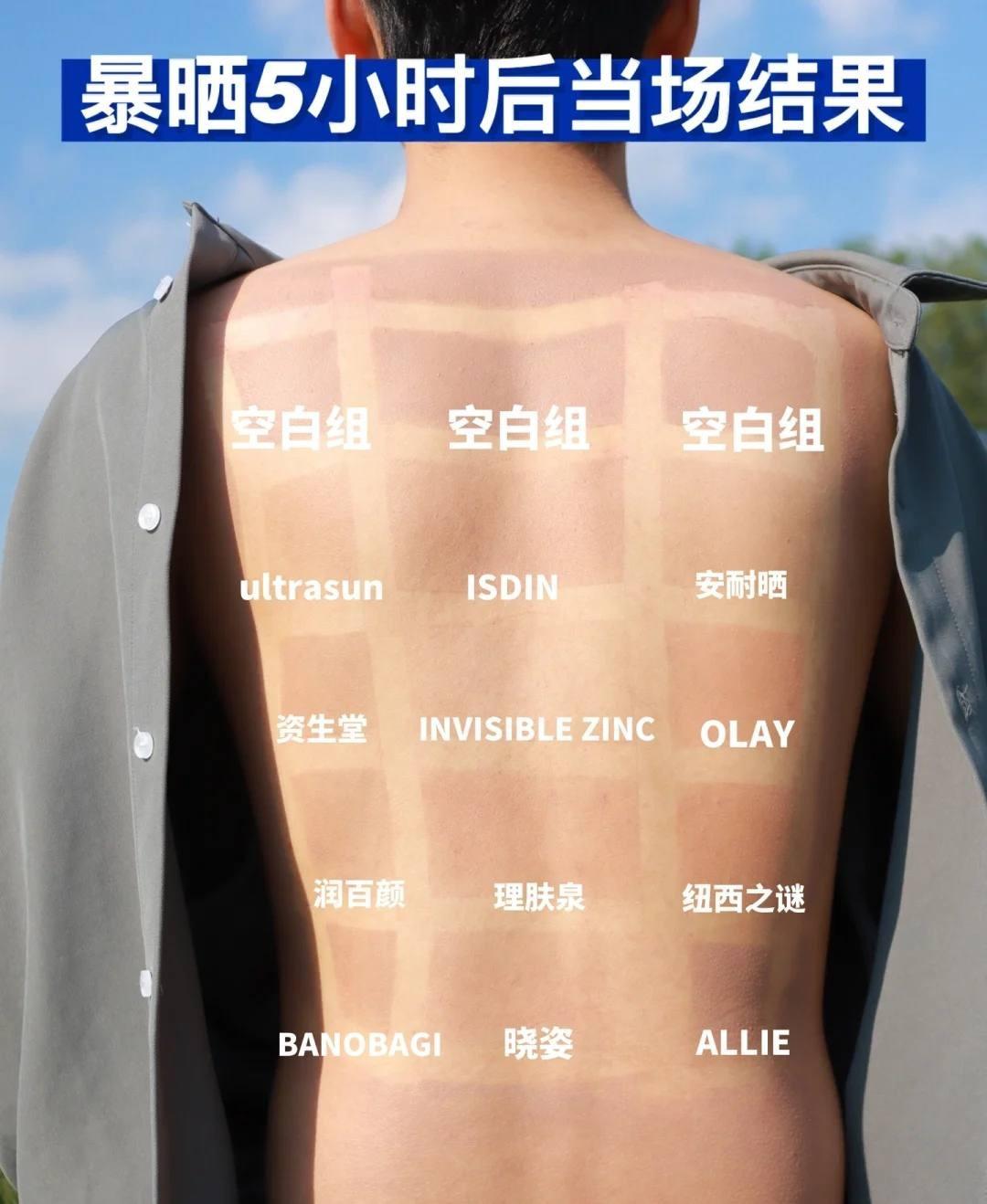 可以看看下圖的防曬霜測評中,用膠帶隔離開背部肌膚,然后把各種價(jià)位的防曬霜涂抹在背上,后的結(jié)果顯而易見,防曬的反而是這一層便宜,常見的膠布。