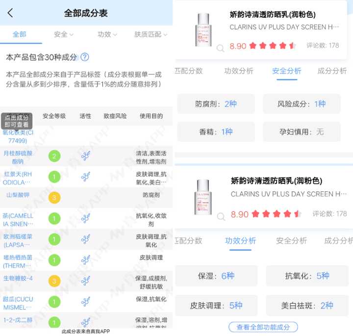 文中查化妝品成分、和功是借助真我app,順便打開(kāi)“孕婦模式”,避免盲目種草
