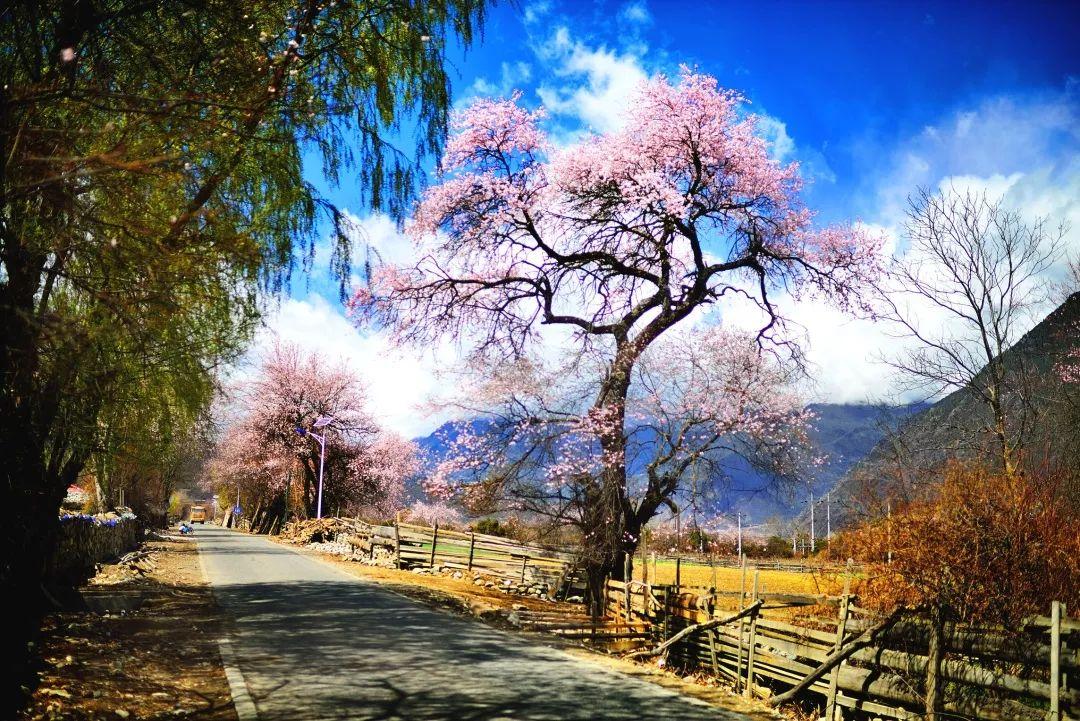 雪山之下,桃花粉嫩,云朵嬌羞,遠處雪峰佇立,偶爾兩三戶桃花深處的人家若隱若現(xiàn),更添柔情嫵媚!3月15之前若是趕得上桃花開,則是極幸運的!