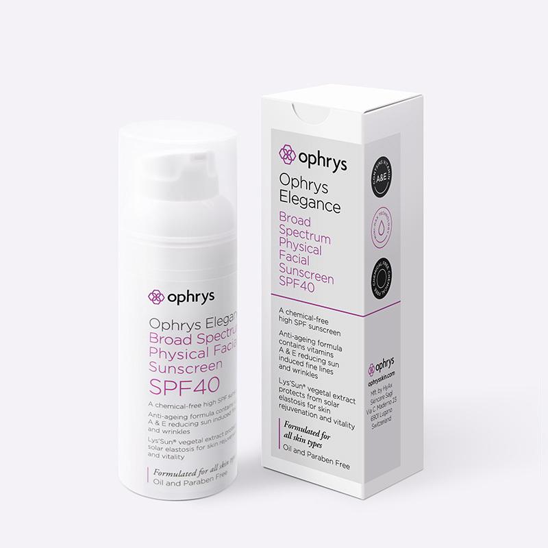 Ophry抗皺防曬霜(broad spectrum physical facial sunscreen)是一款防曬抗皺雙重功的物理防曬產(chǎn)品,SPF值為40,足以應(yīng)付日常防曬需要。