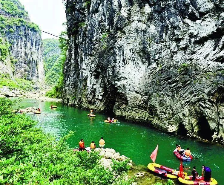 漂流的過程中,可以欣賞到黃芩巖、杉木峰、肖洞拐、蛇沖、雷打巖、刀背巖等 19 處各具特色的景點,讓來到這里的人能在幽幽峽谷中洗去身心的疲憊。