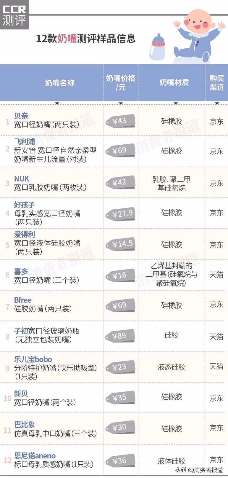 這次測試的是12款市面熱銷的奶嘴產(chǎn)品。