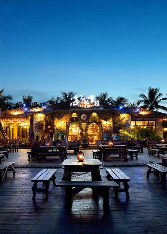 "海的故事"是博鰲海邊的一處休閑場所。翠綠的椰子樹下,青青的芳草徑邊,丟棄破舊木船和丟棄破舊木船的船木,拼造而起。破舊的船木整造了形狀各異的桌椅,掛著的漁具和漁網(wǎng),沒有任何多余的累贅,的只是歡愉的浪花和椰風(fēng)的奏鳴。