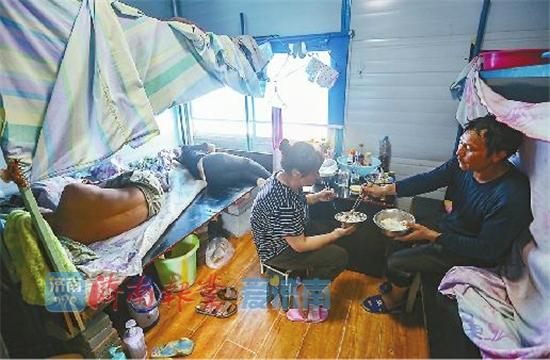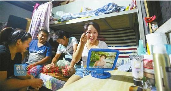 “還沒好好逛濟南,天太熱了不愿出去,白天在工地等他下工,這段日子挺無聊的,想回重慶了?!睂τ谛≡鴣碚f,來濟南陪丈夫拉近了家庭的距離,也拉遠了自己原本的生活。不止小曾,羅珊珊和梁大賢也沒好好逛過濟南,聊天、看劇、打游戲是女工們下工后主要的消遣。“去市區(qū)要坐公交,不熟悉也不愛出去?!绷_珊珊說。