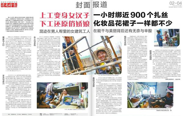 在西客站片區(qū)銀山路齊魯之門項目工地的“職工之家”,住著來自湖北、四川、重慶等地的建筑工人,時不時就能看到女性進出。四川巴中人曾慧在工地上干建筑木工,下工之后她脫下臟兮兮的工裝,簡單梳洗之后,換上了靚麗的花裙子,幾乎換了個人似的,不知道的話,很難將其與女建筑工人聯(lián)系起來。