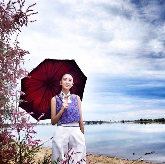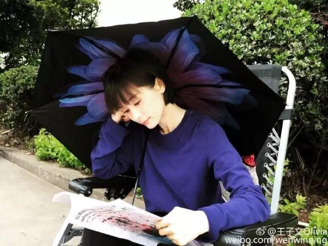 古靈精怪的王子文撐傘的樣子別有一番感覺