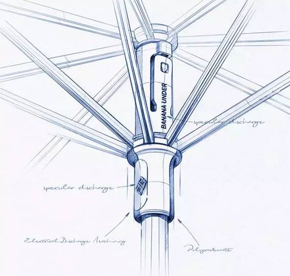 為了減小傘的體積,設計師還更新了傘的支架設計,用了交錯式的方式,減小了傘架收齊后的圓形半徑,讓傘身收起來的時候變得更細,更加的節(jié)省空間。