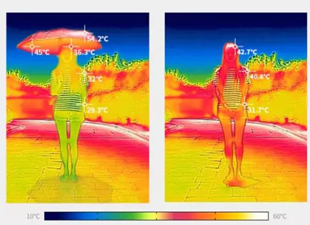 而蕉下傘在隔熱功能上也有的表現(xiàn)哦,看看供應商給到我的熱感對比圖~