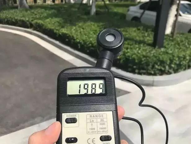 他用專業(yè)的紫外線測試儀在正午的大太陽底下測試了紫外線指數,數值是1989 μW/cm2,相當于4級曝曬指數。