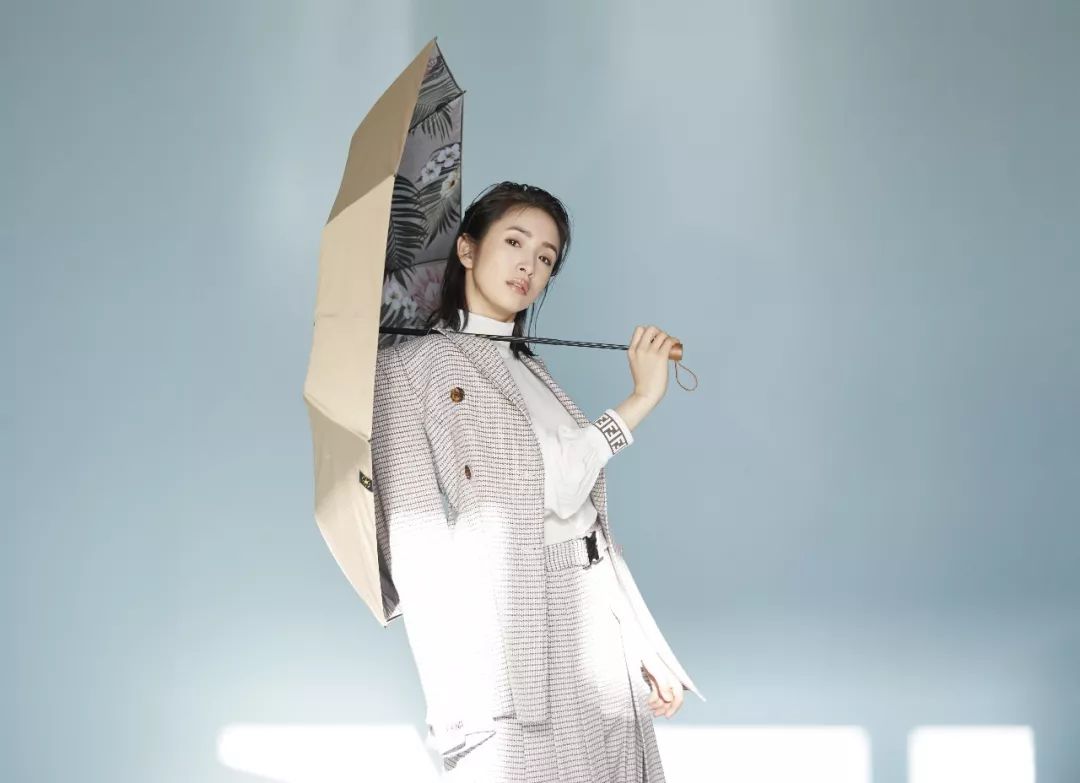 佟麗婭撐著傘的樣子,美得像是畫里走出來的婉約女子