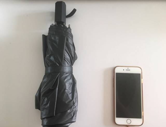 收傘之后的寬度只有6cm,大概只有蘋果6s手機的寬度那么大,長大概是手機的兩倍。