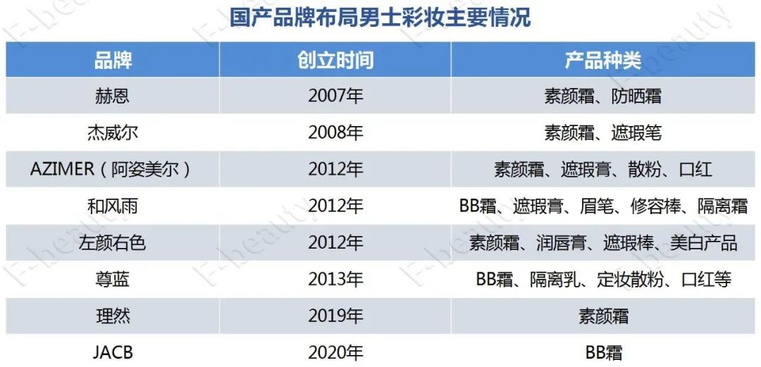 除此之外,國(guó)內(nèi)入局男士彩妝的品牌也不少。其中,男士護(hù)膚品牌赫恩創(chuàng)立于2007年,目前旗下產(chǎn)品覆蓋護(hù)膚、彩妝、洗護(hù)等領(lǐng)域。除了一些老牌化妝品品牌外,近幾年面市,并推出彩妝產(chǎn)品的新銳男士品牌理然和JACB分別已完成3億元B+輪融資和千萬(wàn)元天使輪融資。