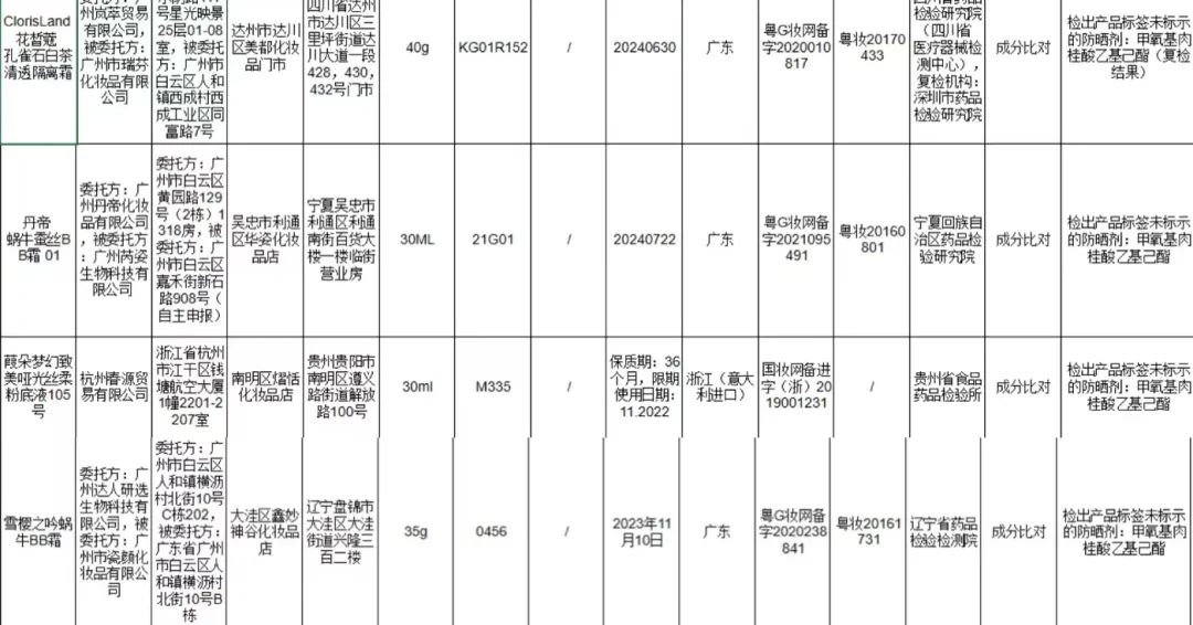 除了染發(fā)劑和防曬霜,此次因成分對(duì)比不合格被通報(bào)的產(chǎn)品還有BB霜,隔離霜以及粉底液。