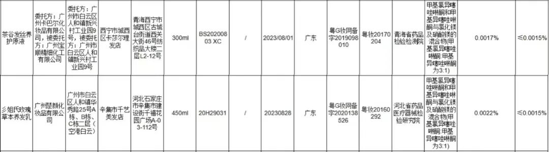 另外,此次抽檢中,甲基氯異噻唑啉酮和甲基異噻唑啉酮與氯化鎂及硝酸鎂的混合物(甲基氯異噻唑啉酮:甲基異噻唑啉酮為3:1)也被在2個(gè)批次中檢出超標(biāo),均為護(hù)發(fā)產(chǎn)品。