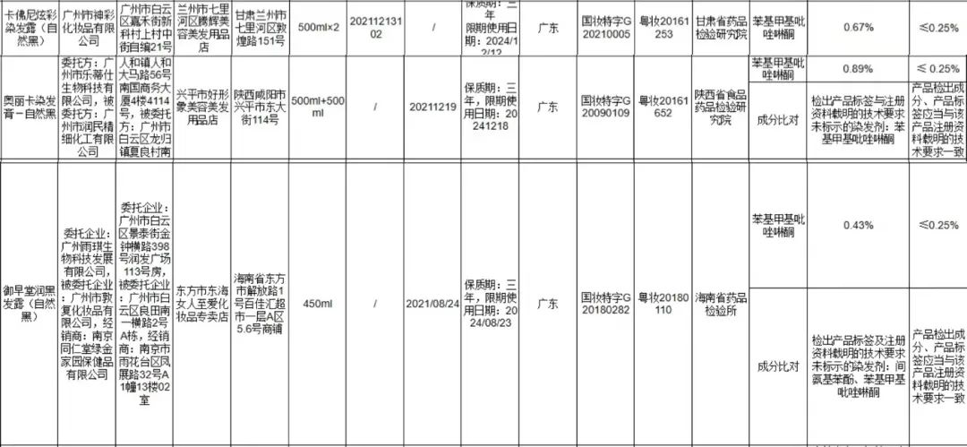此次抽檢中,因苯基甲基吡唑啉酮含量超標(biāo)被點(diǎn)名的產(chǎn)品共有3批次,均為染發(fā)產(chǎn)品。