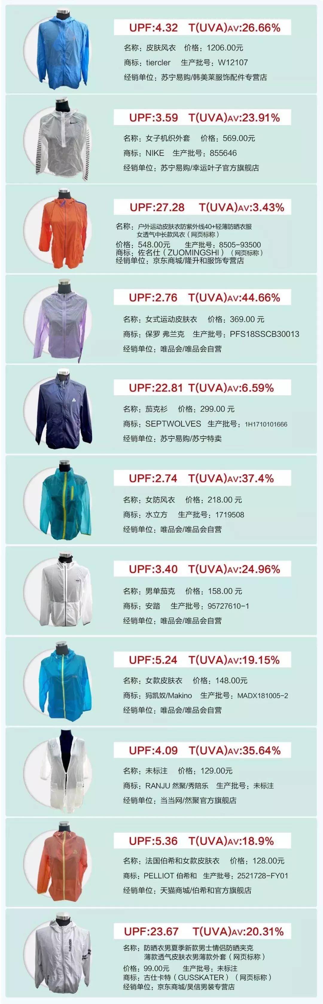 有11款樣品在吊牌上未明示任何具有防曬或者防紫外線的信息,且防紫外線性能沒能達(dá)到標(biāo)準(zhǔn),涉嫌虛假宣傳。