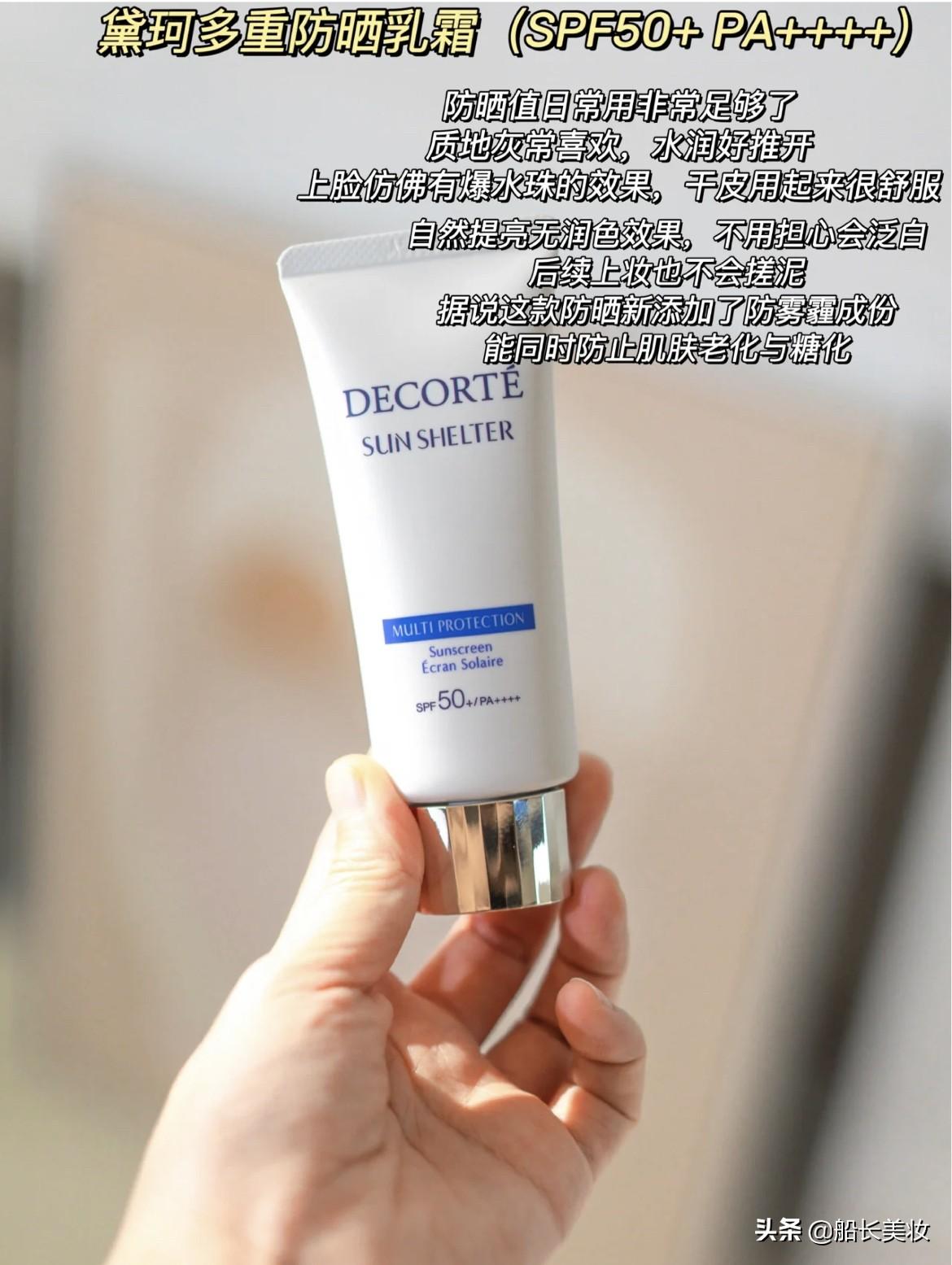 黛珂多重防曬霜,SPF50+PA++++的高倍數(shù)防曬。集抗老、美白、防曬三種功能于一身,性價比杠杠的,還可以防止大氣污染對皮膚的侵害,打造人工皮膚屏障。成膜后不粘膩,膚感很好,再上底妝潤潤的,關(guān)鍵是對敏感肌很友好!日常通勤必備!