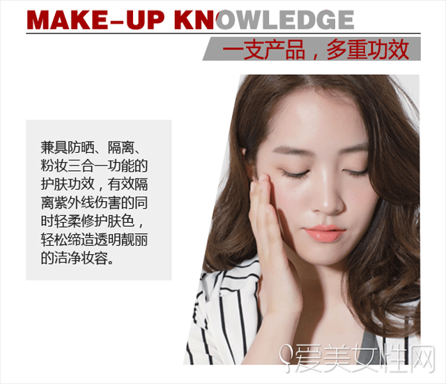 現(xiàn)在什么都講究多功能,防曬霜也不例外。放眼望去,今日的防曬霜除了具備優(yōu)良的防曬功外,還有很多額外的附加功能,例如美白、抗皺、抗氧化等。而對(duì)于忙碌的OL們來(lái)說(shuō),這些功能中實(shí)用也立竿見(jiàn)影的功能是修顏,一步就可以讓熬夜肌神奇地變成光彩肌,不用怎樣化妝就能漂漂亮亮出門(mén)。