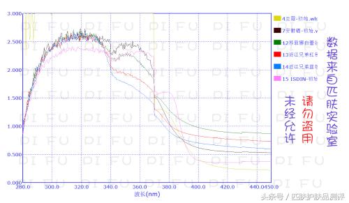 所以,之后所有的防曬測評中,我不會再使用SPF和PA這兩個防曬系數(shù)了,而是會直接結(jié)合到相應(yīng)的光譜圖來給大家做詳細的講解。