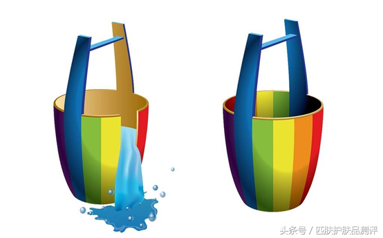 舉個例子,假如這個彩虹桶里面可以裝的水的體積,反映出產(chǎn)品整體的紫外線防護能力。那么即使你在一個某個波段塊吸收特別強,但是只要它其中的一個短板,或者防曬漏洞,就會對終實際的防曬的能產(chǎn)生很大影響。